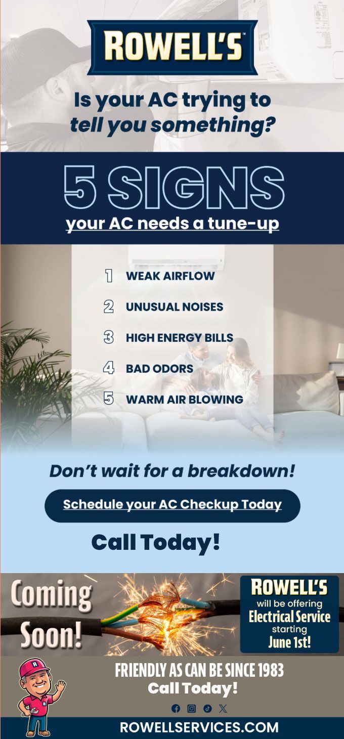 "Friendly As Can Be Since 1983!" When you need help with your plumbing, drains, heating, cooling or electrical in Ashland, you can always rely on Rowell's Services! Call us now or book online!